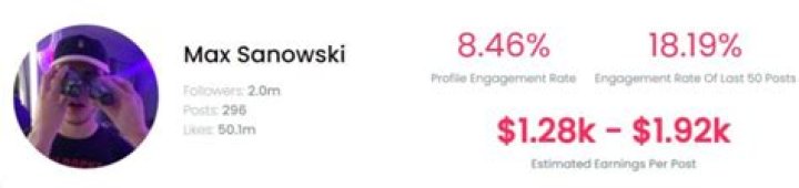 Considering Andrew’s latest 15 posts, the average engagement rate of followers on each of his post is 46.81%. Thus, the average estimate of the amount he earns from sponsorship is between $311 – $519.