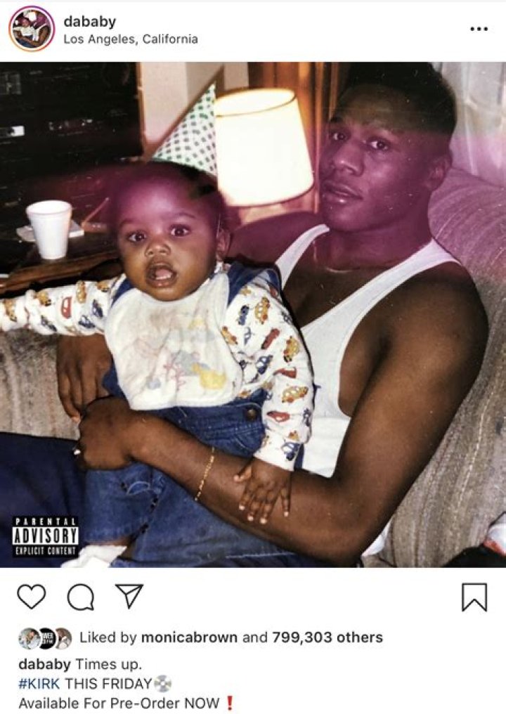 DaBaby first shared the news while on stage at a show at UCLA on Monday night. He initially misled the crowd by saying it was "dropping tomorrow," but then clarified that only the pre-order would be available Tuesday and the entire project on Friday. After much applause from his fans, he warned them, "Don't tell nobody." However, this morning he made this information public by posting Kirk's cover art, which appears to feature his father (who strongly resembles DaBaby) holding the rapper when he was just baby DaBaby.